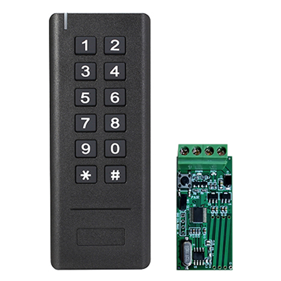 WK1-EM is a Wireless Keypad & EM Card Reader, including the Wireless Keypad and Receiver, it's 433MHz Rolling code communication between the keypad and receiver, and the receiver can be connected to any 3rd party Wiegand controller.